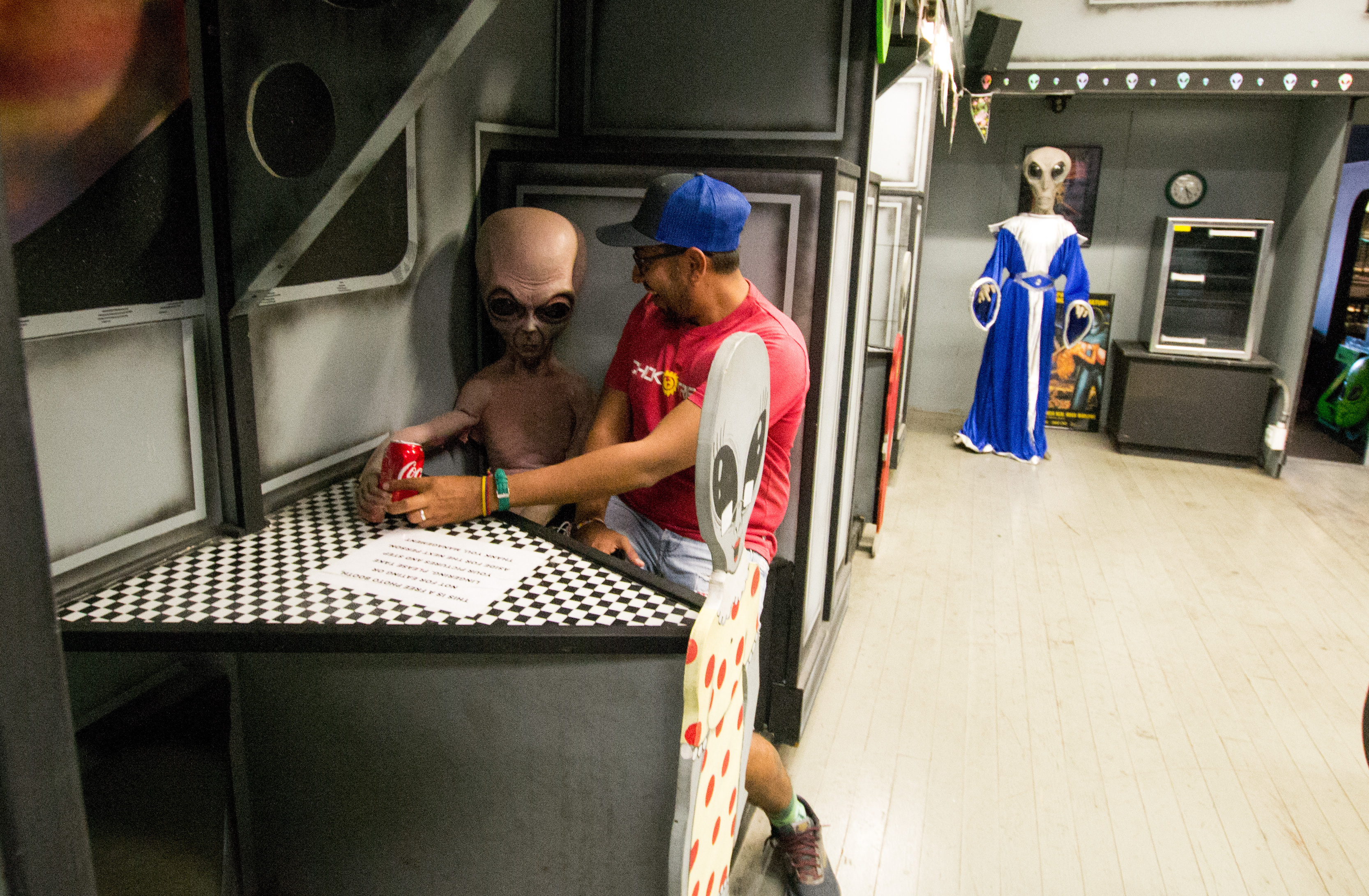 Una tienda de souvernir que tiene un pequeño recorrido, con diferentes escenarios cotidiano de como viven los alienigenas entre nosotros. Puedes tomarte fotos muy creativas.